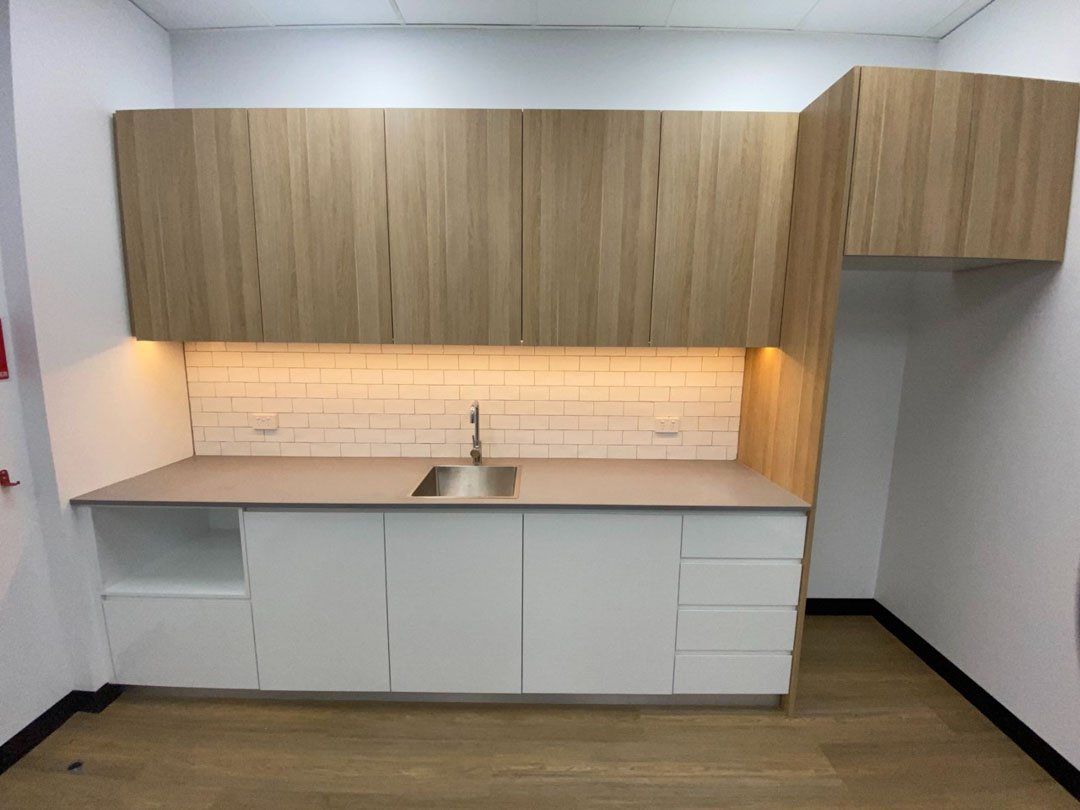 A redesign of a commercial office space for a new tenancy, creating several manager's offices, a new and modern, open-planned office area, a combined kitchen and lunchroom, and refreshed bathrooms.