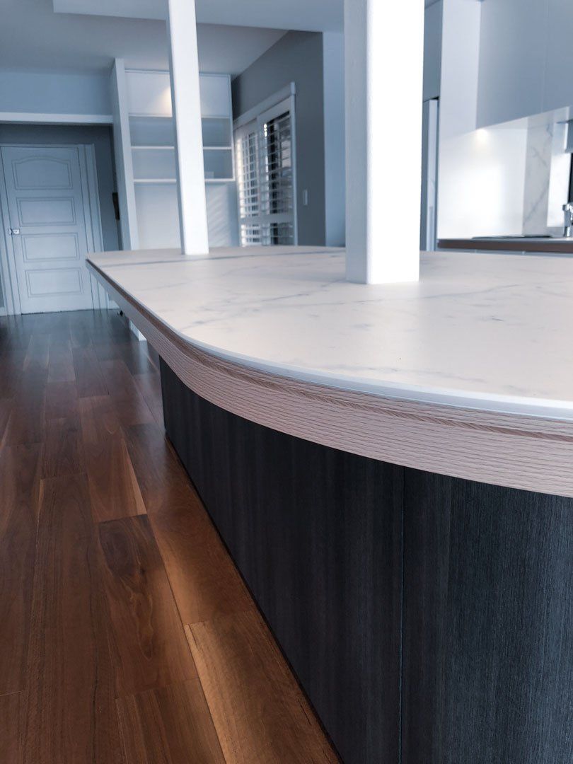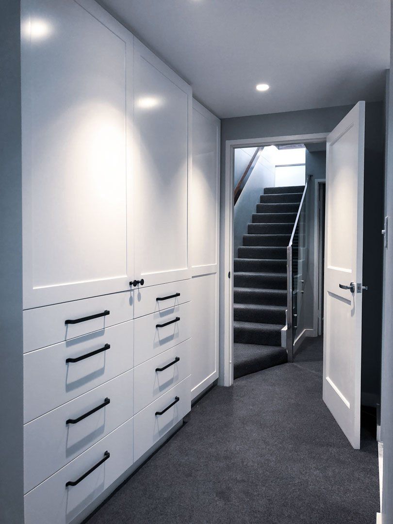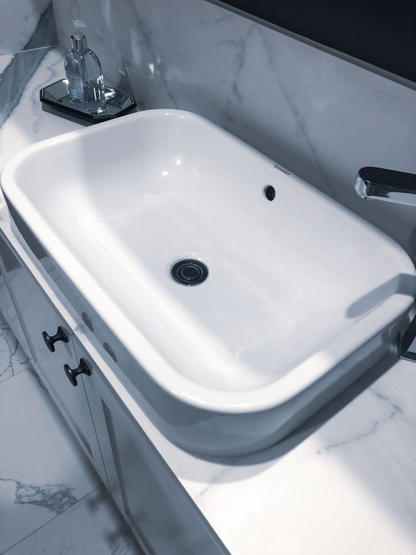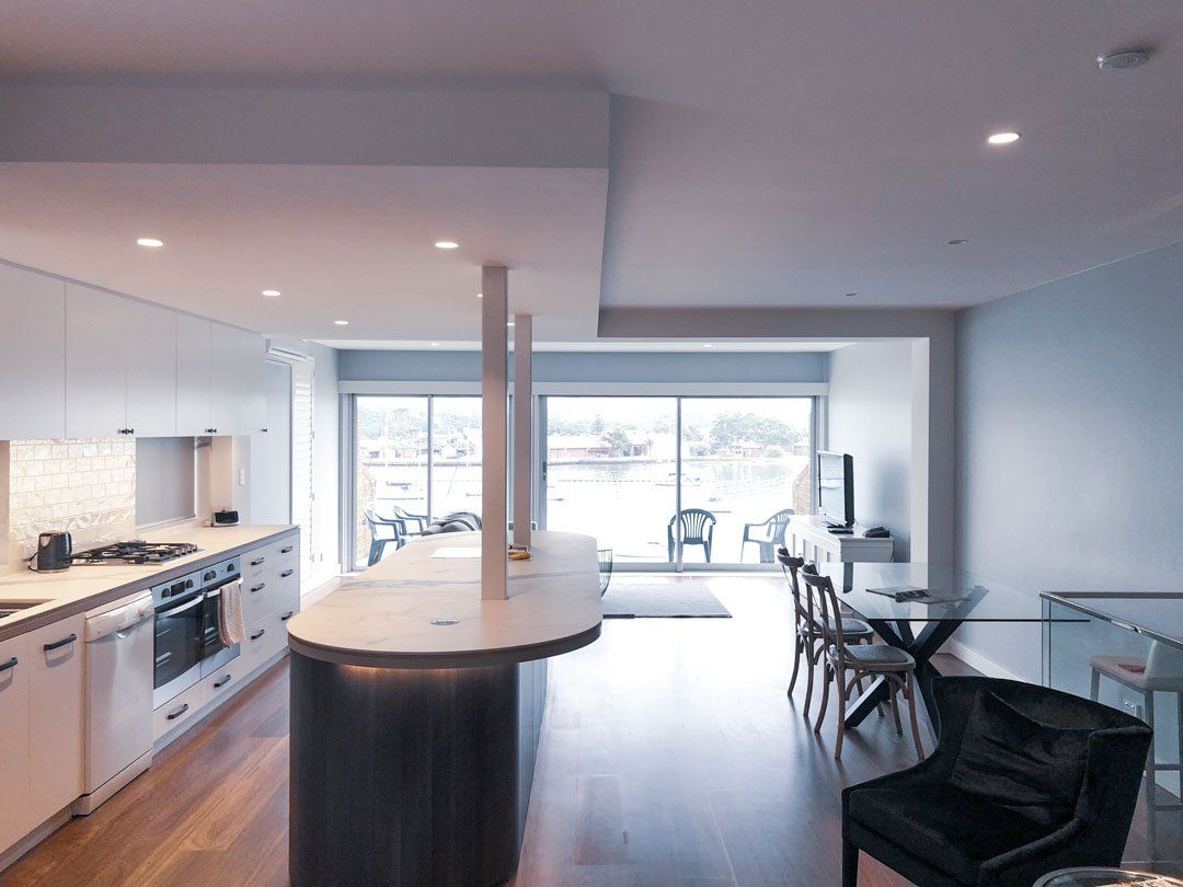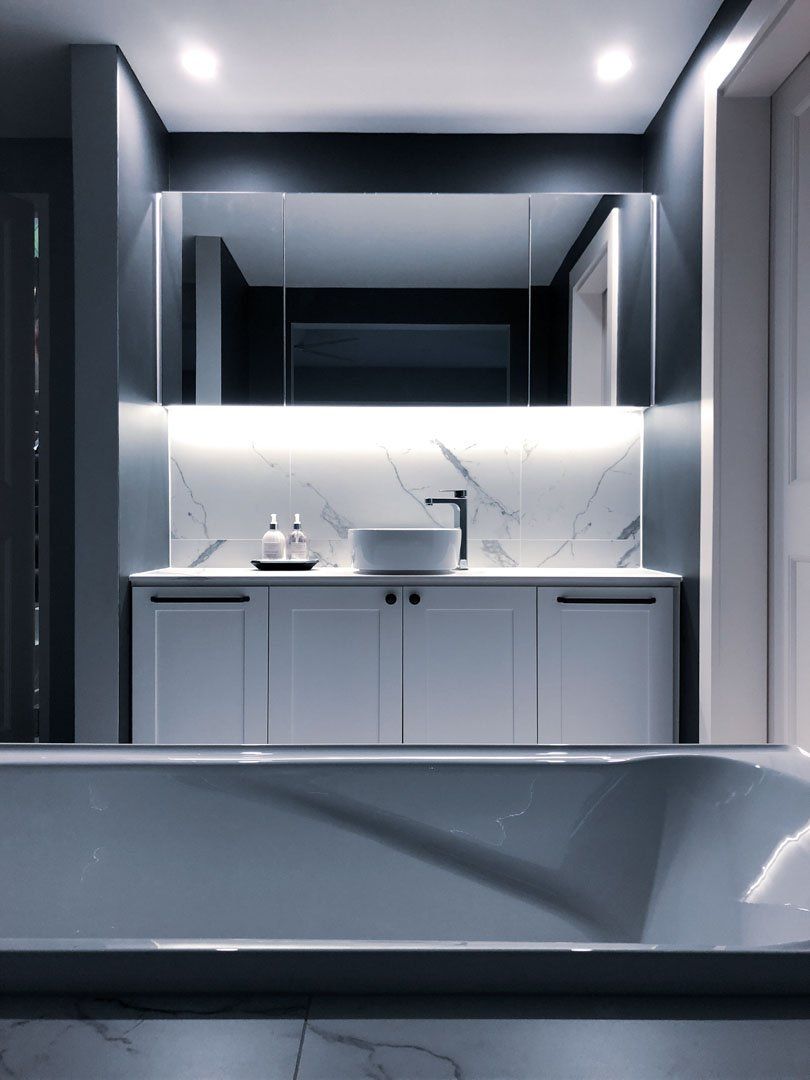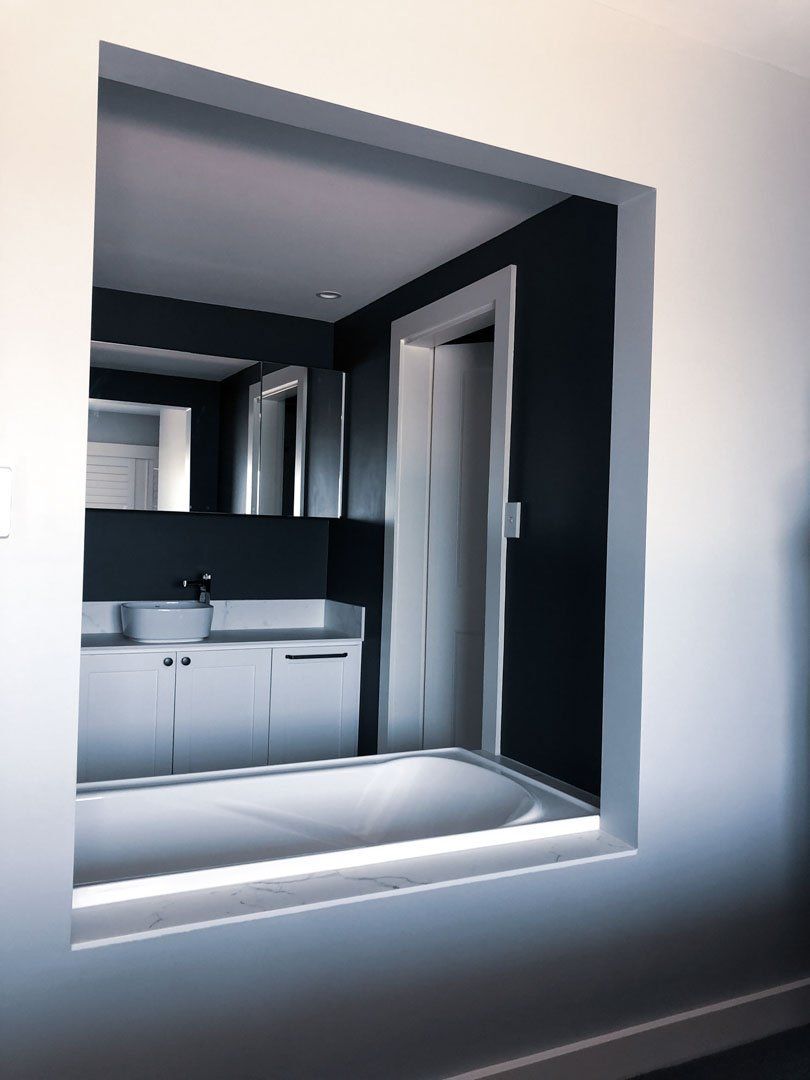 A tired kitchen and dated tiled flooring was removed to install beautiful hardwood timber, topped with a state-of-the-art kitchen with sleek lines and finishes. The bathrooms were completely redone with marble, white and cool grey tones to create a soothing experience. The upstairs flooring was replaced and storage built in to give the owners a more modern, tidy finish.