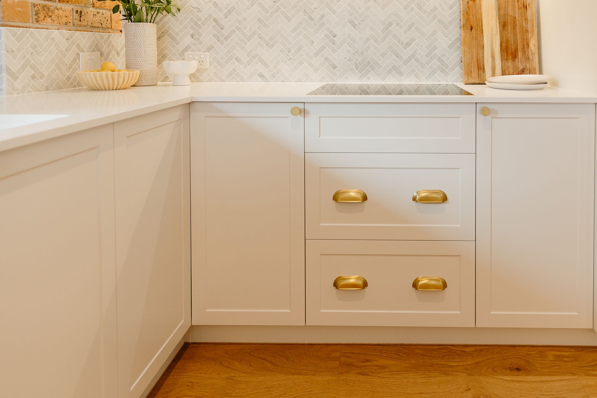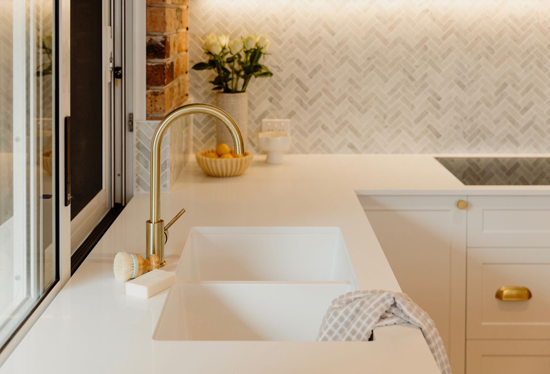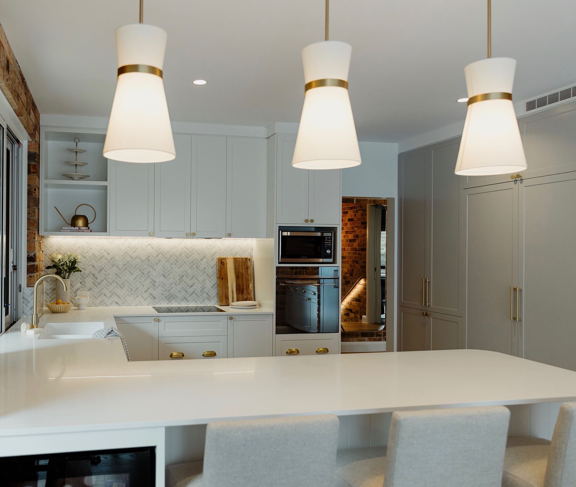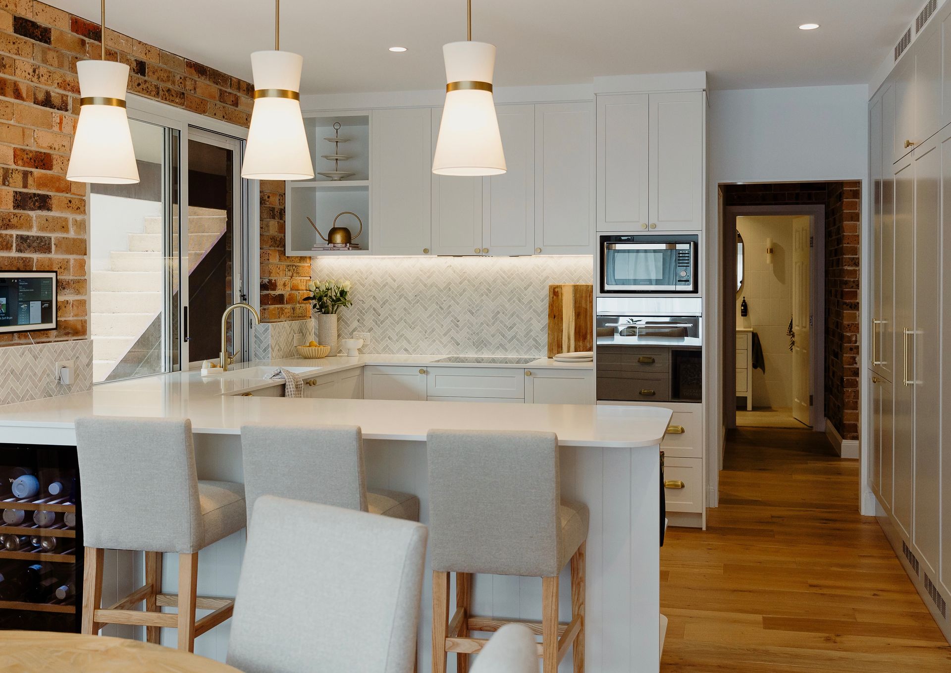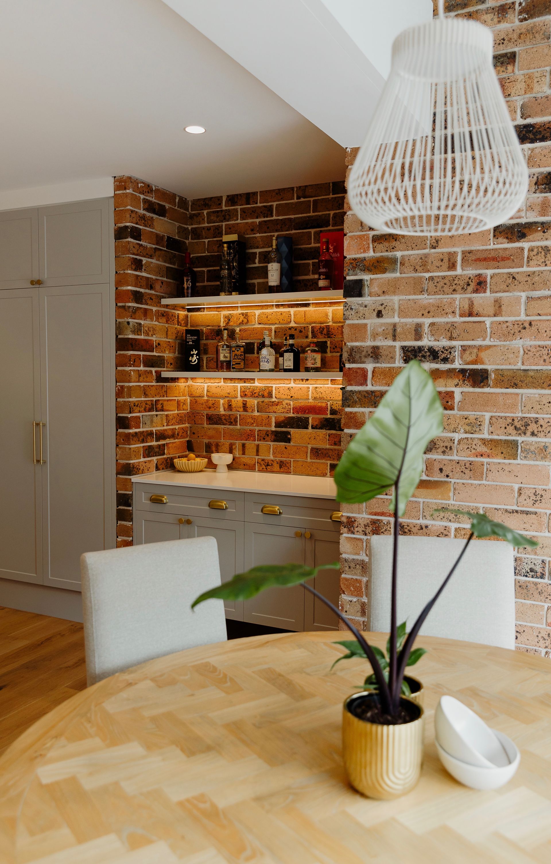 Working together with a quality designer enabled us to transform the main living areas of this double brick 70's residence into a beautiful modern and practical space the owners love. The soft palette throughout works beautifully with the exposed brick in the home. Our works saw the entire living area of the home stripped bare with new flooring laid, a new kitchen, bathroom, laundry and combined lounge rumpus including fireplace.